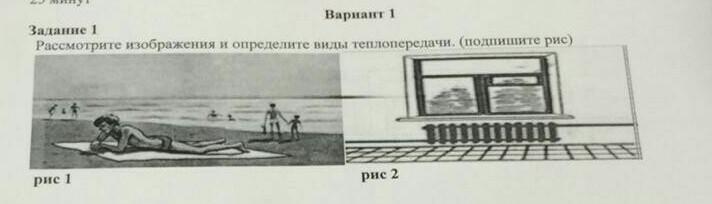 Рис.1) Человек нагревается потому, что солнце передаёт ему своё тепло. Рис.2) Холодный воздух опускается вниз и попадает на батарею, он нагревается и поднимается в верх.
