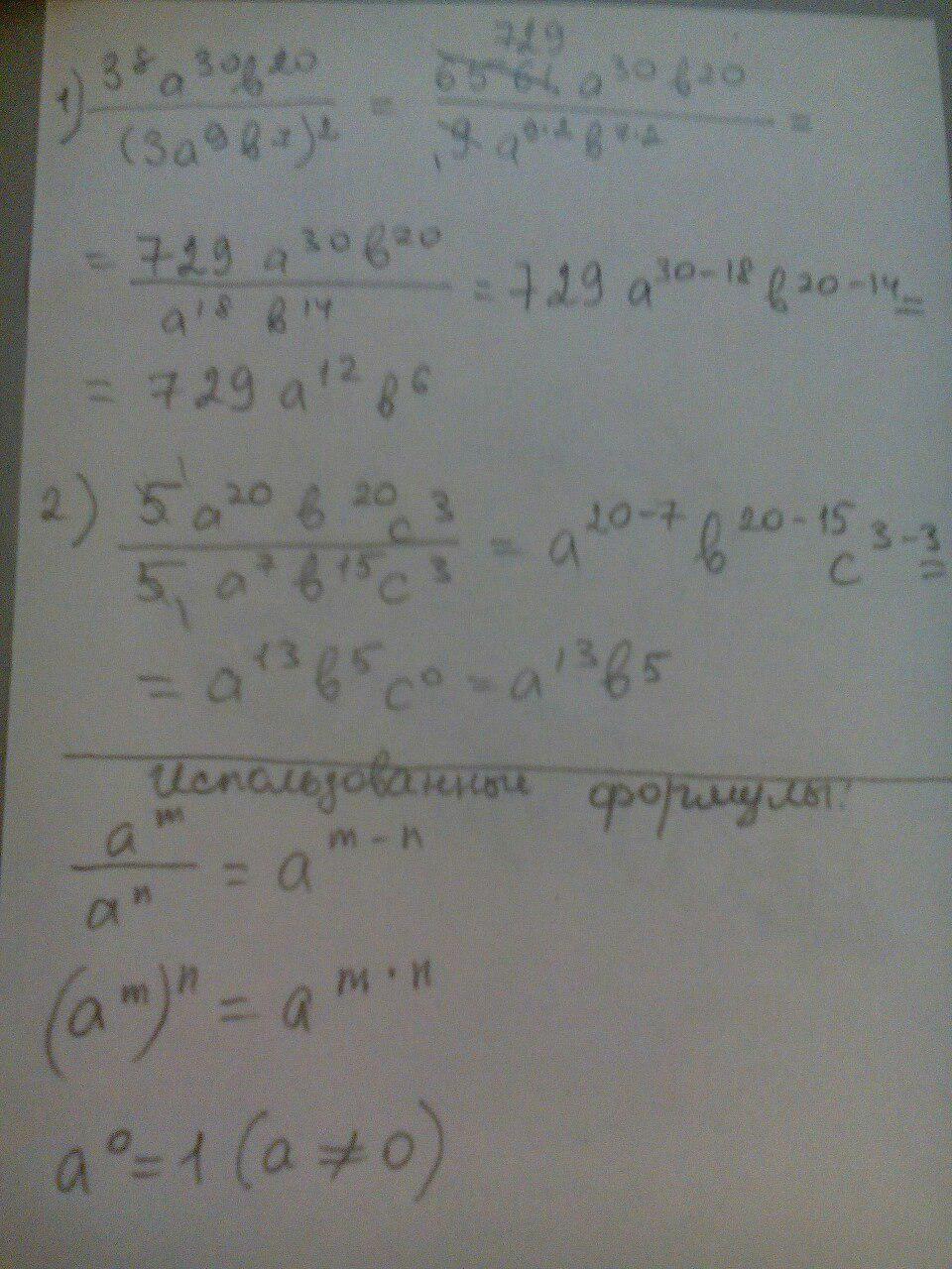 формулы записаны либо перед примерами либо после них...там числа обозначеньі как а и b в степенях m или n