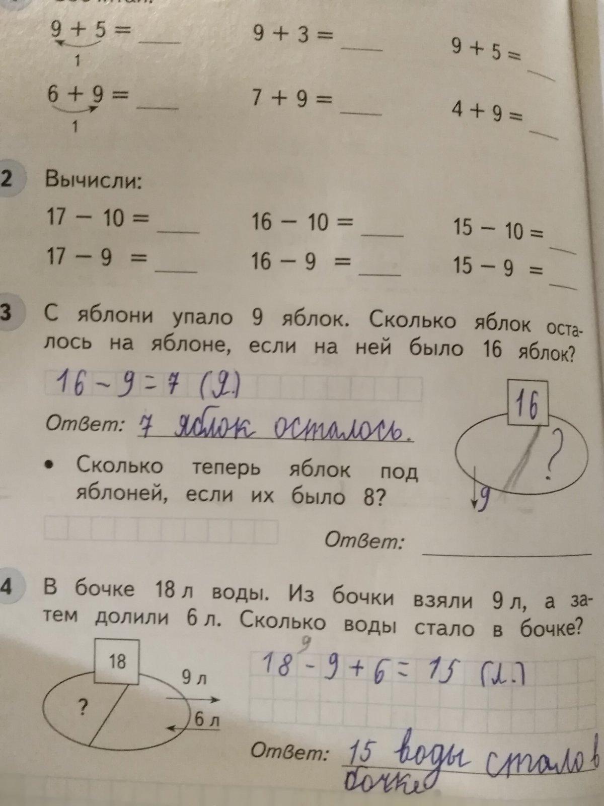 17 яблок под яблоней. Упало 9 яблок и +8 яблок которые добавили