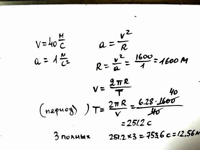 Автомобиль едет по кольцевой дороге имеющей форму окружности со скоростью 144 км в час при этом модуль ускорения автомобиля в 10 раз меньше модуля ускорения свободного падения.