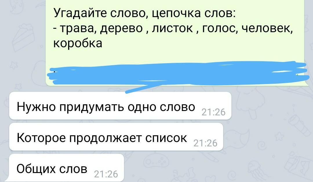ДАЮ 20 БАЛЛОВ. Продолжите цепочку слов :трава, дерево, листок, голос, человек, коробка. ХВАТАЕТ ОДНОГО СЛОВА!!!