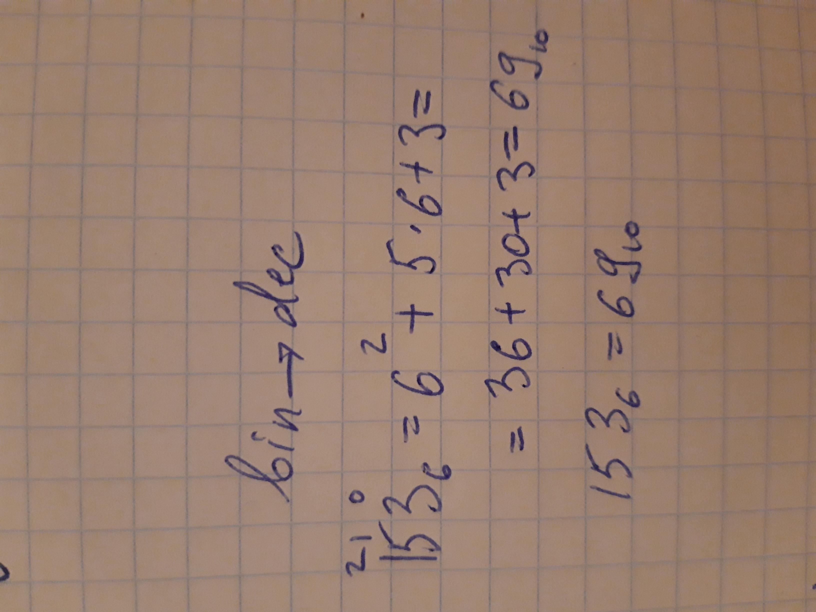153(6) = 1*6^2 + 5*6^1 + 3*6^0 = 36 + 30 + 3 = 69