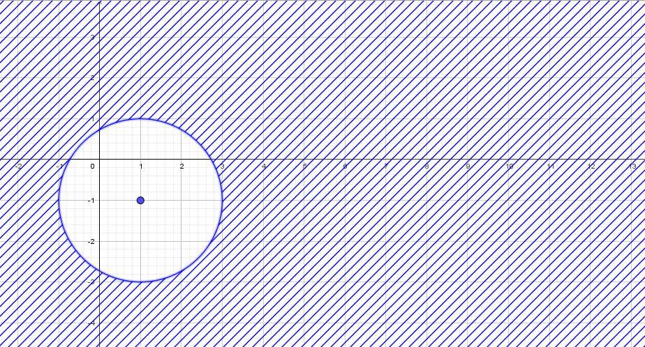 найдите множество точек комплексной плоскости удовлетворяющих уравнения или неравенствам : |Z-1+i|>=2