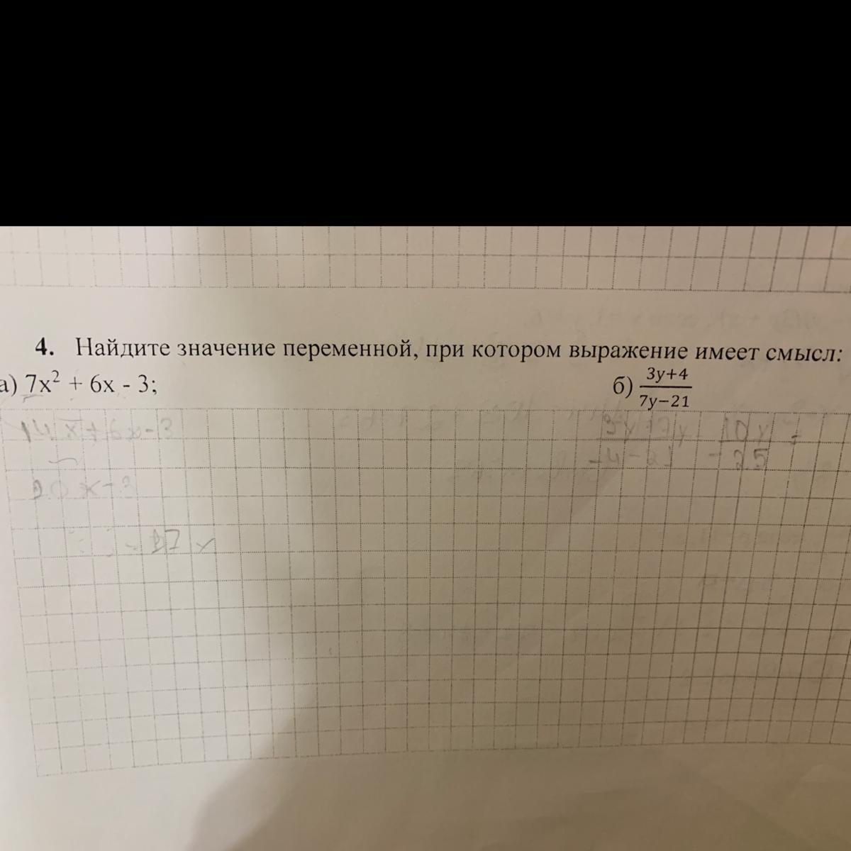 x не должно быть равно 3 (7у-21=0 у=21/7)