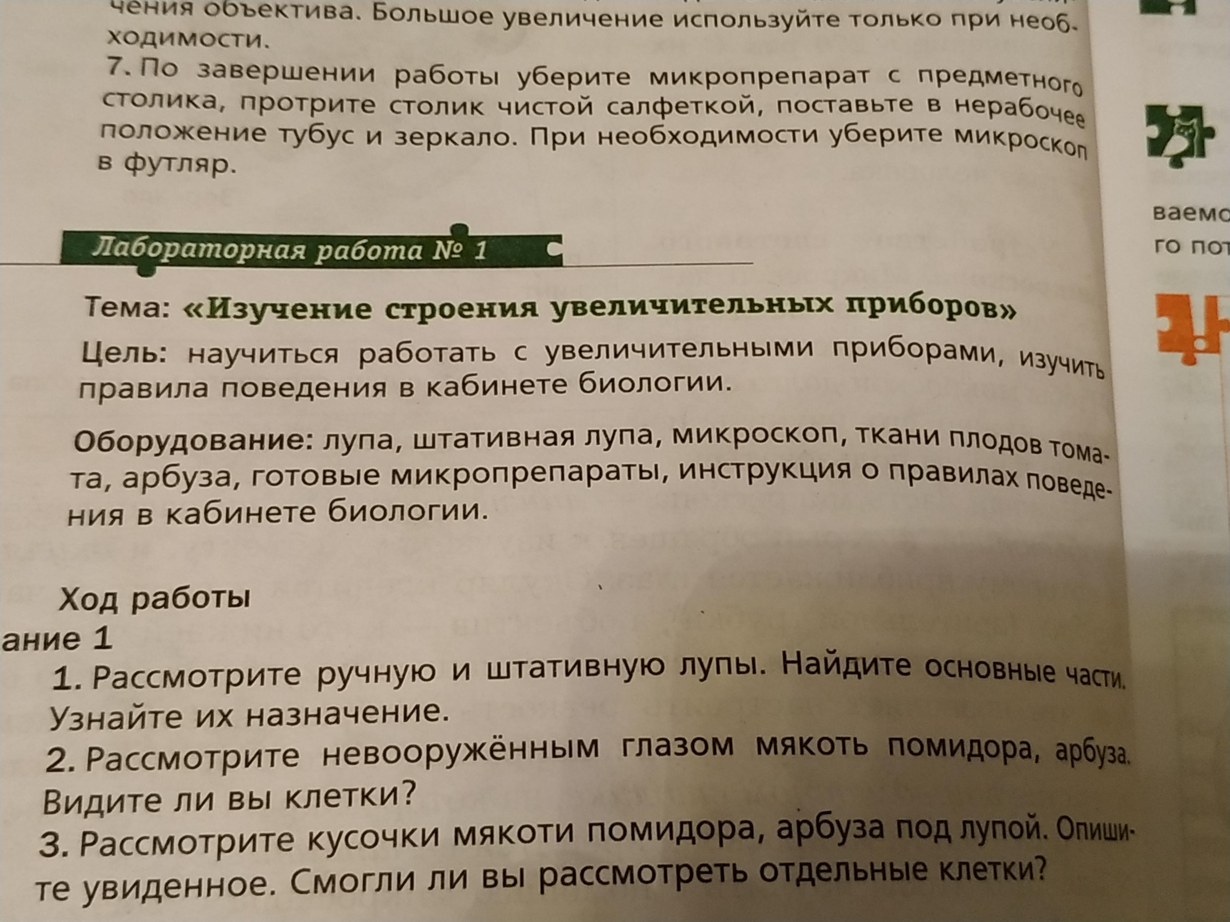 оборудование : микроскоп , лупа , ткани помидоров, кожица лука