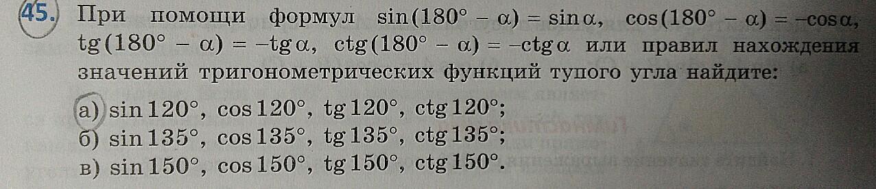 4) ctg120=ctg(180-60)=-ctg60=-1/√3