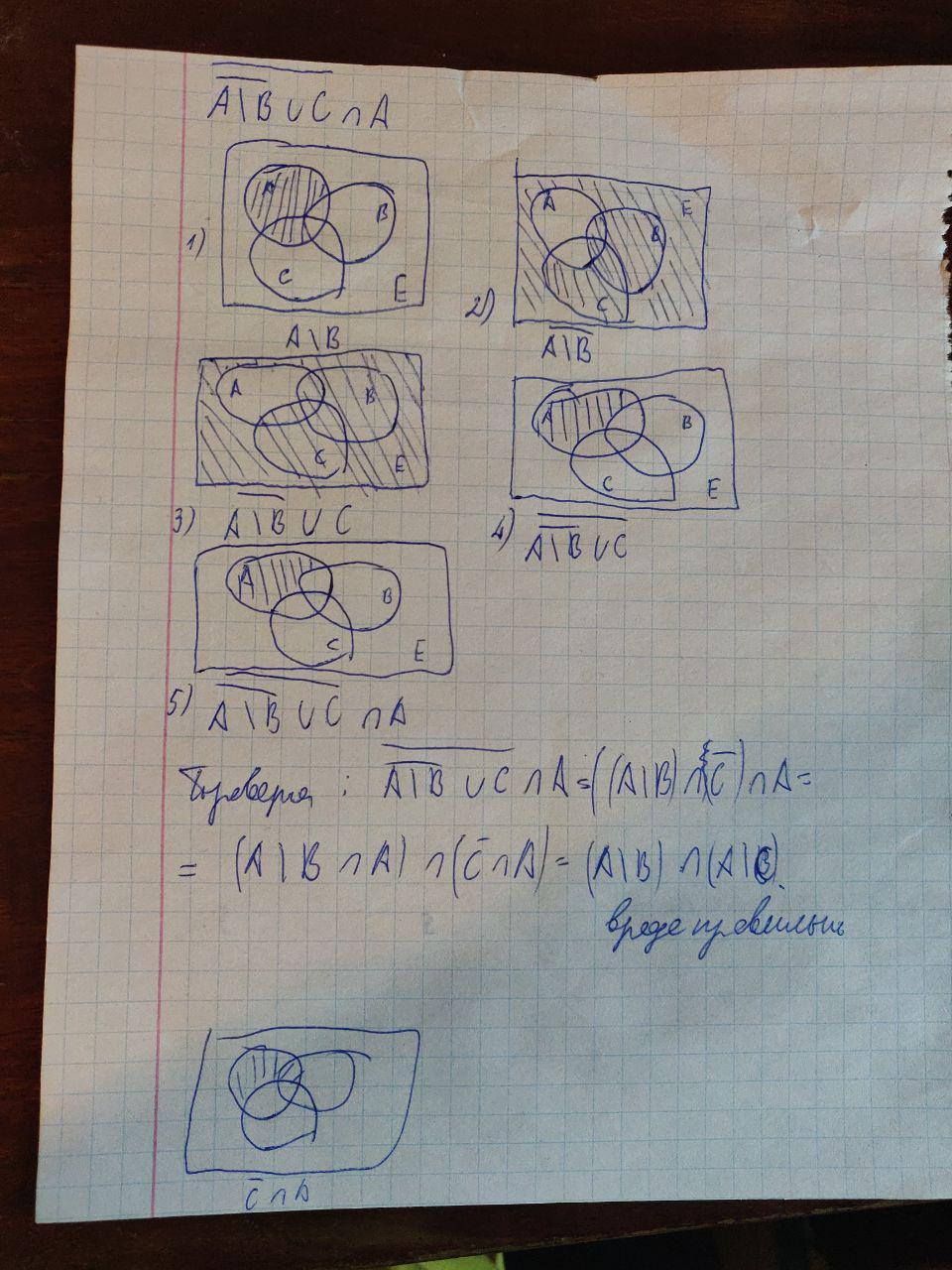 Нужно поэтапно изобразить на диаграммах Эйлера-Венна результаты операций.