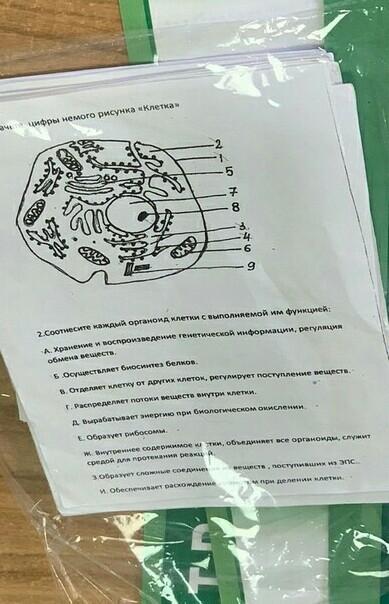 3. Шероховатая эндоплазматическая сеть. Распределяет потоки веществ внутри клетки (Г)