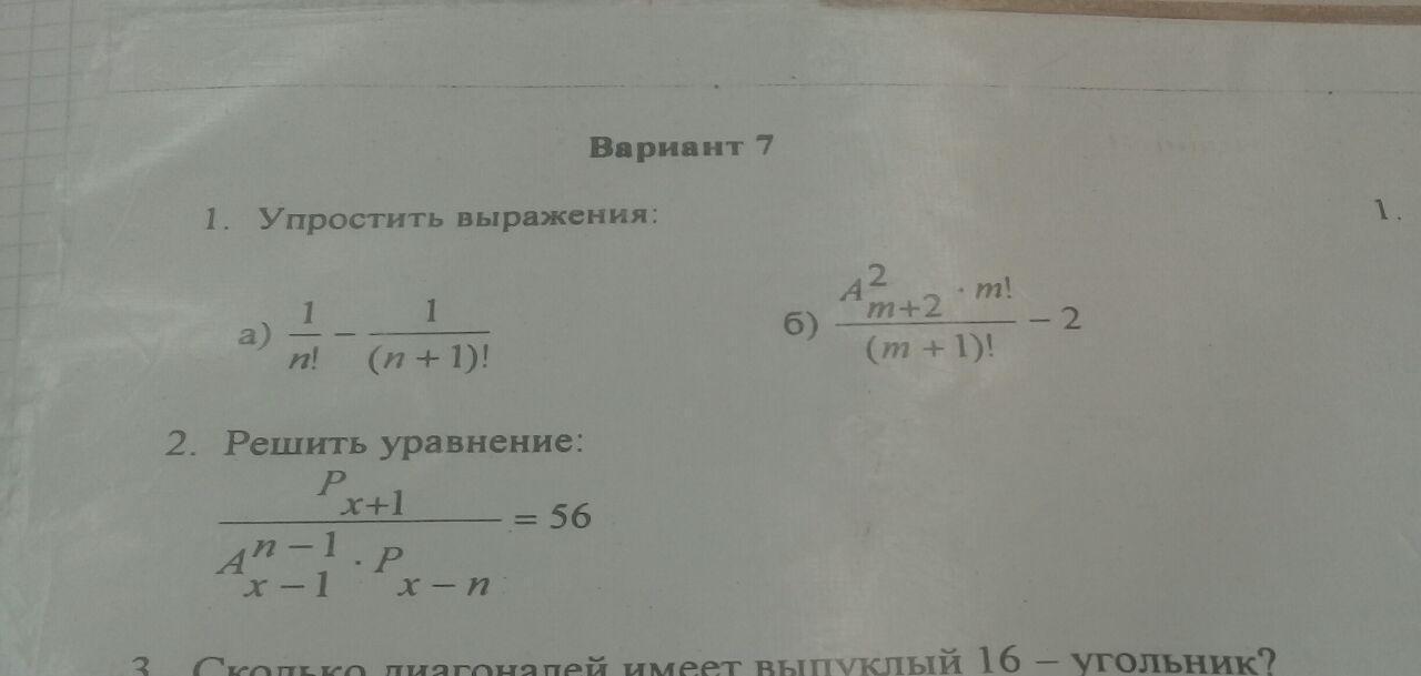 б) можно сократить дробь на m! тогда в числителе останется А со степенью и основанием, а в знаменателе (m+1) и в конце минус два