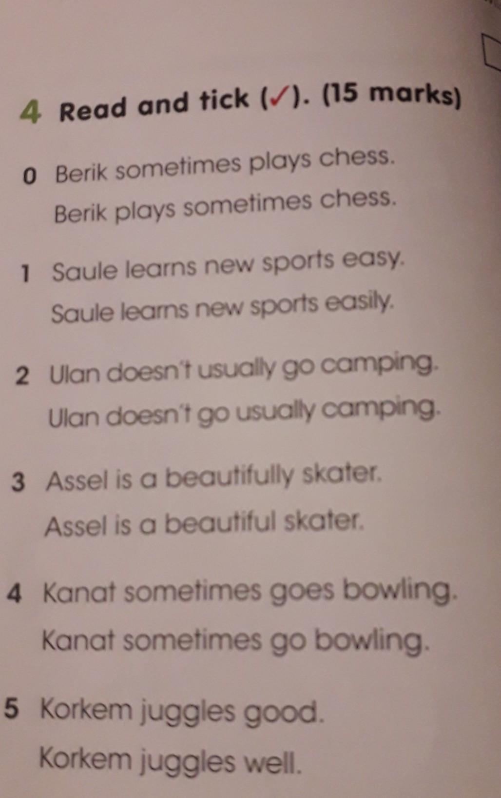 Read and tick. ( 15 marks)
