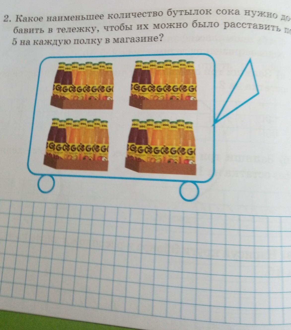 3 бутылки надо добавить, чтобы расставить по 5 бутылок на полку