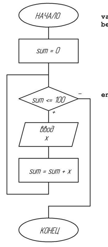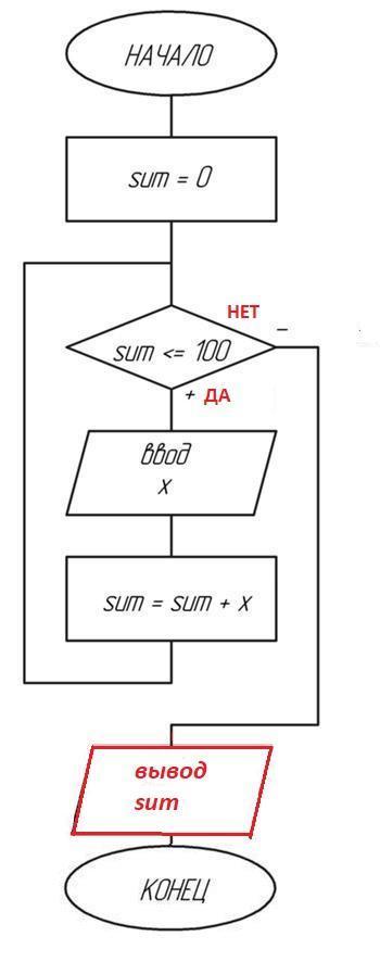 вводятся положительные числа прекратить ввод когда сумма введенных чисел превысит 100 блок схема