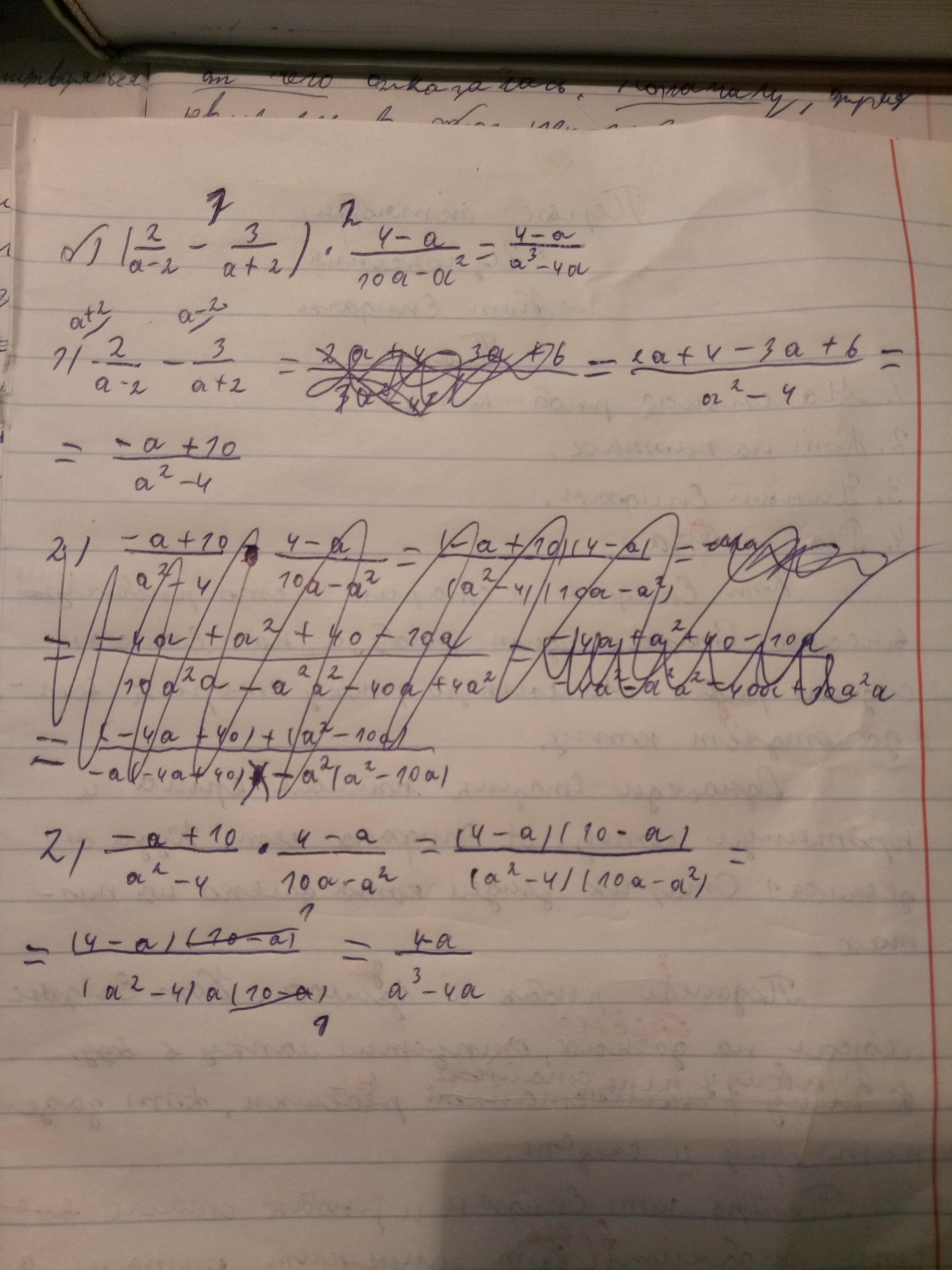 Я так понял, что тебе нужно просто сократить. 2-ой пример меня смущает, если бы вместо 4 - a было 4a - a, то получилось бы 1/2a, проверь учебник на всякий случай.