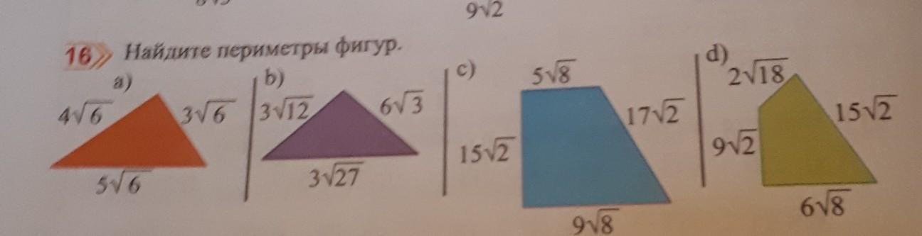 г)2√18+15√2+6√8+9√2=42√2(Р четвертого многоугольника)