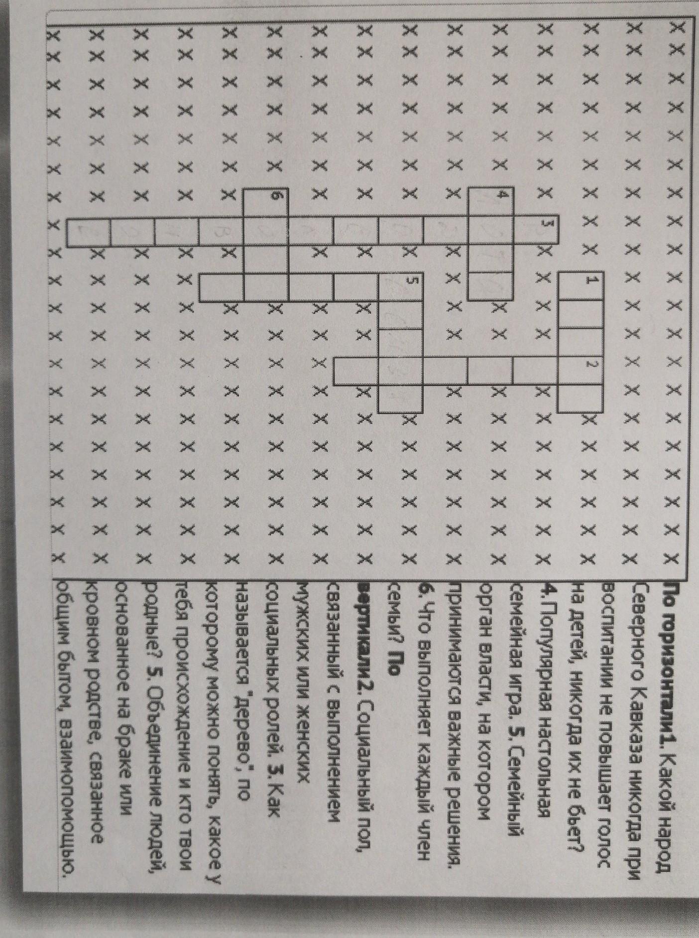 Помогите пожалуйстакроссворд Семья По горизонтали. 1. Какой народ Северного Кавказа никогда при воспитании не повышает голос на детей, никогда их не бьет?