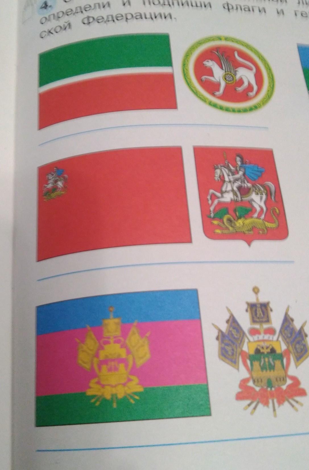 С помощью дополнительной литературы и Интернета определи и Подпиши флаги и гербы субъектов Российской Федерации.