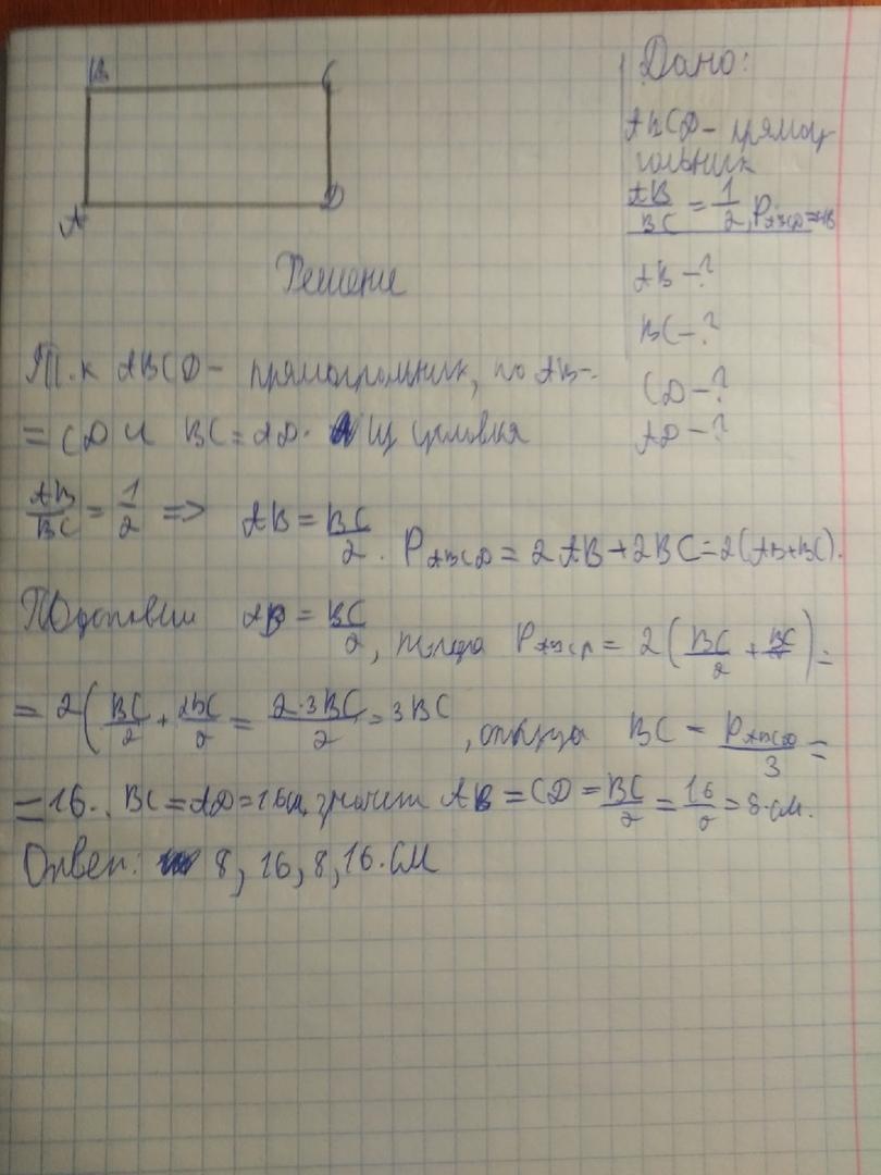Периметр прямоугольника равен 48 сантиметров. Найдите его стороны если они относятся как 1:2.