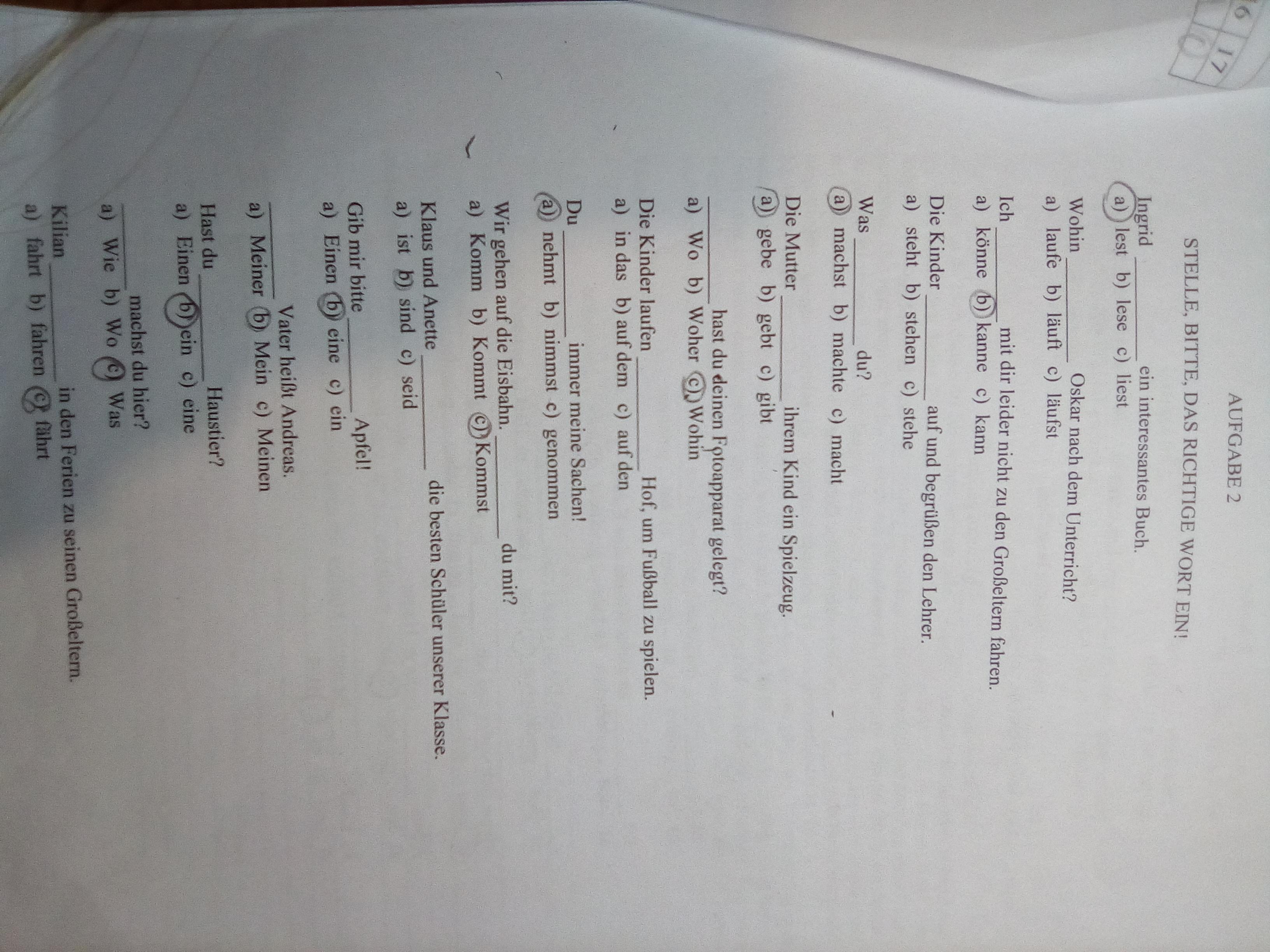 1. Ingrid liest.. (глагол "lesen" меняет во втором и третьем лице ед.числа коренную гласную