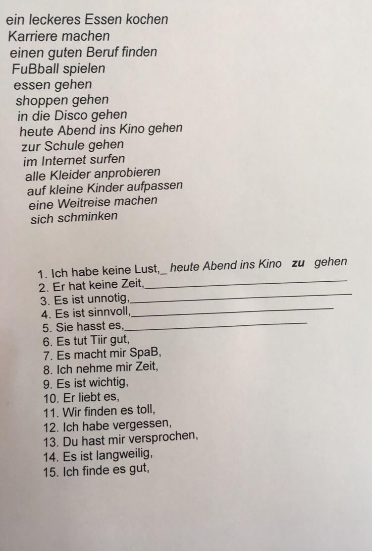 3. Es ist unnötig, heute Abend ins Kino zu gehen.