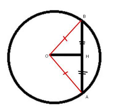 OH ⊥ AB и OB = OA как радиусы окружности, следовательно, ΔAOB - равнобедренный ⇒ OH - высота, медиана и биссектриса.