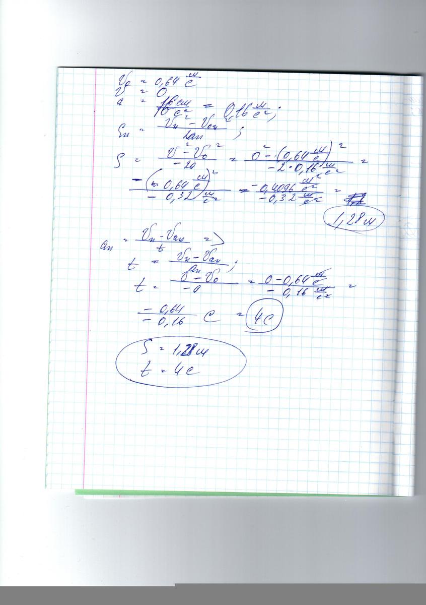 По полу равнозамедленно катится шар начальная скорость 0,64 м/с, а ускорение 16см/с^2. Какое он пройдет расстояние до полной остановки?через какое время он остановится
