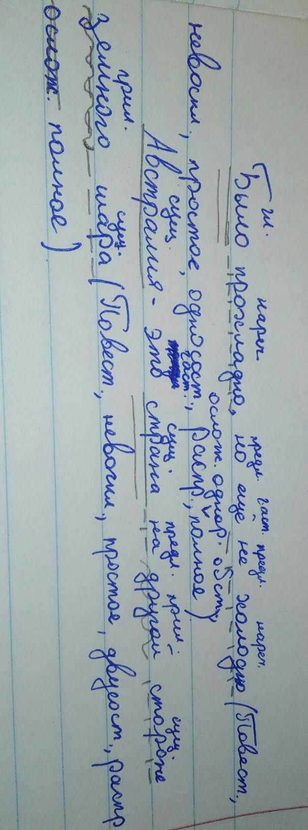 1) Было прохладно, но ещё не холодно . 2) Австралия-это страна на другой стороне земного шара. Сентаксический разбор .