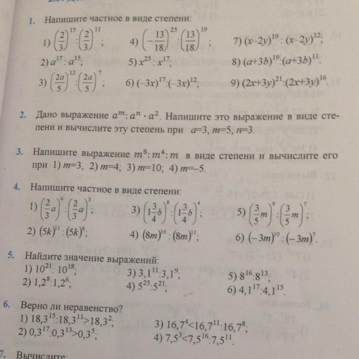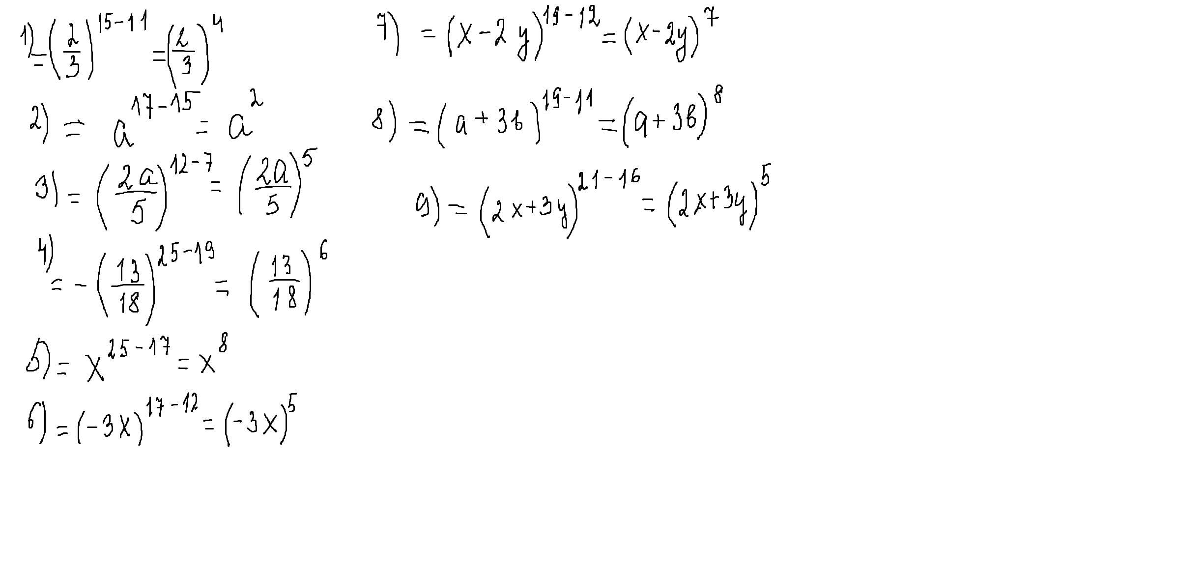 при делении степеней с одинаковым основанием показатели вычитаются.Буду писать без условия.