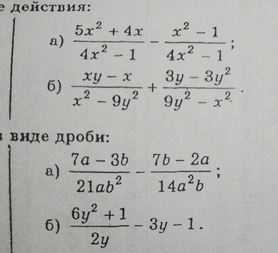 а) =(5x^2+4x-x^2+1)/(4x^2-1)=(4x^2+4x+1)/(2x-1)(2x+1)=(2x+1)^2/(2x-1)(2x+1)=(2x+1)/(2x-1)