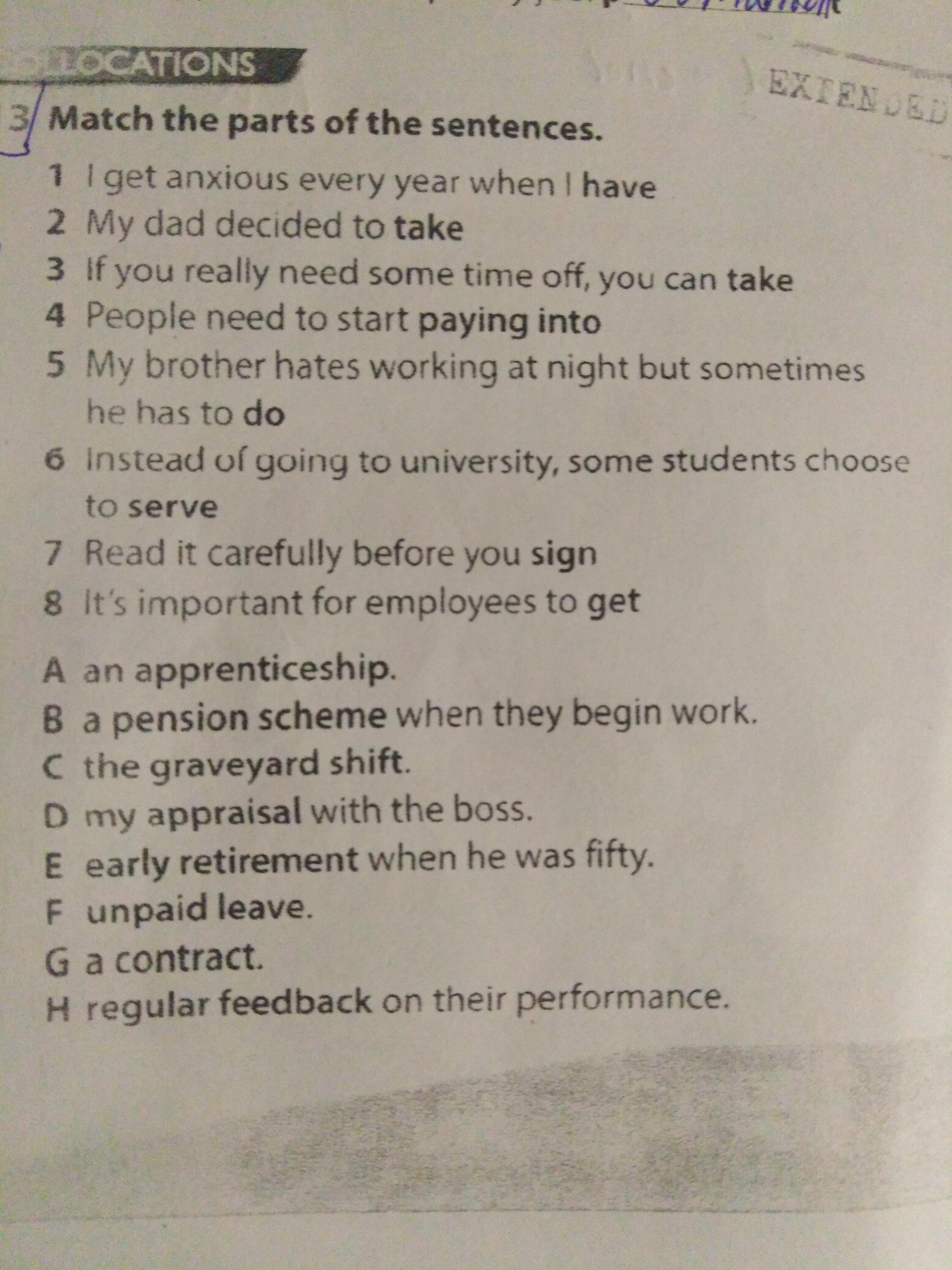 6 Instead of going to university, some students choose to serve A an apprenticeship.