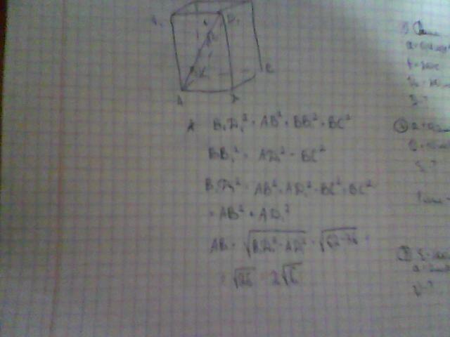 В прямоугольном параллелепипеде ABCDA1B1C1D1: BD1= квадратный корень из 62. AD1=6, B1C1=1. Найти AB.