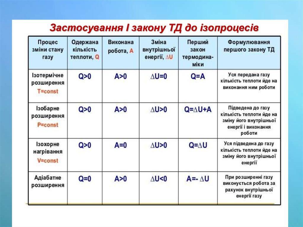 Дайте визначення першого закону термодинаміки. Запишіть його
