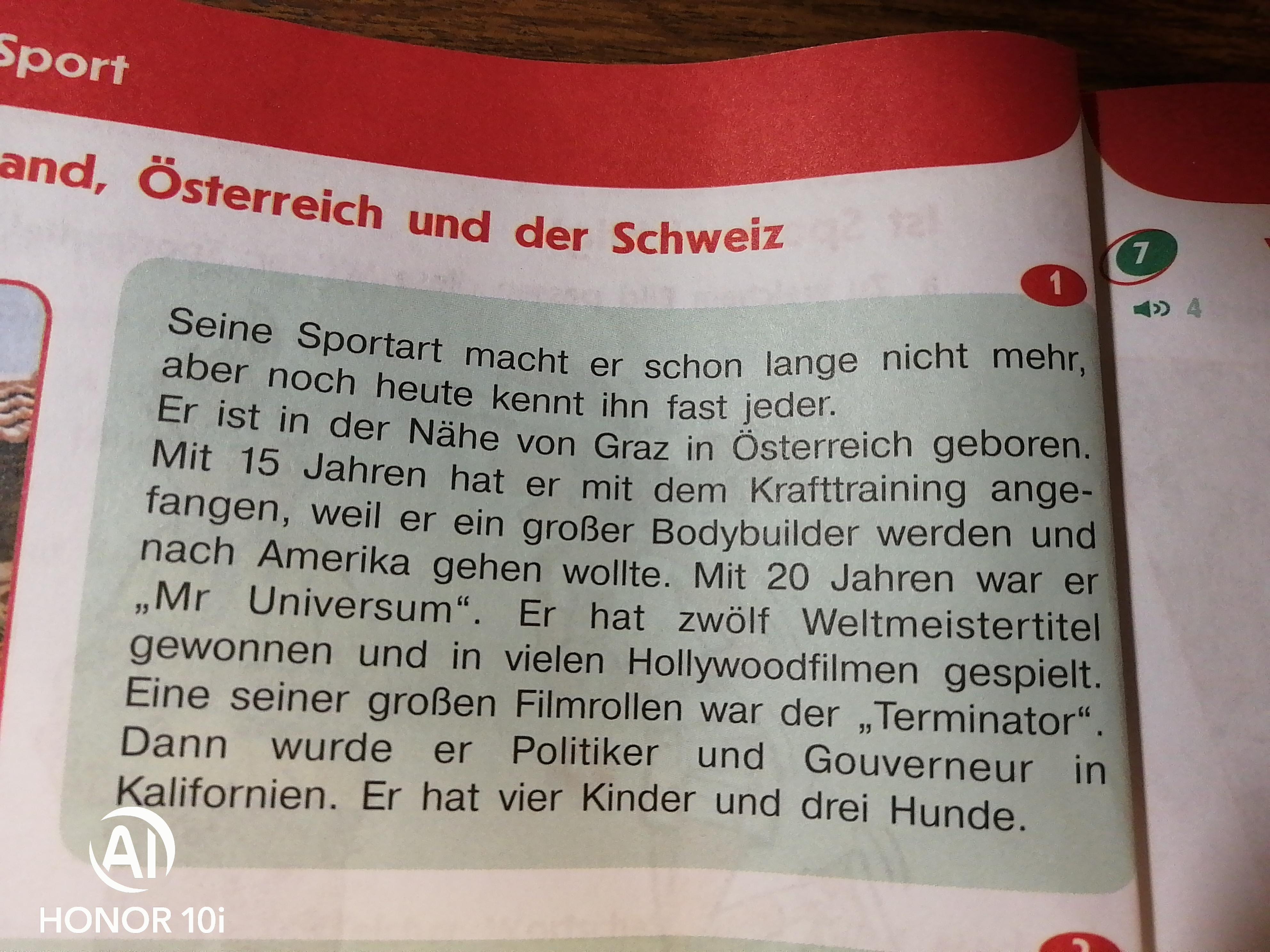 3. Arnold Schwarzenegger hat viele Meistertitel gewonnen. Er hat auch in vielen Hollywoodfilmen gespielt. Er ist auch Politiker und Gouverneur in Kalifornien. Er ist tierlieb und hat drei Hunde.