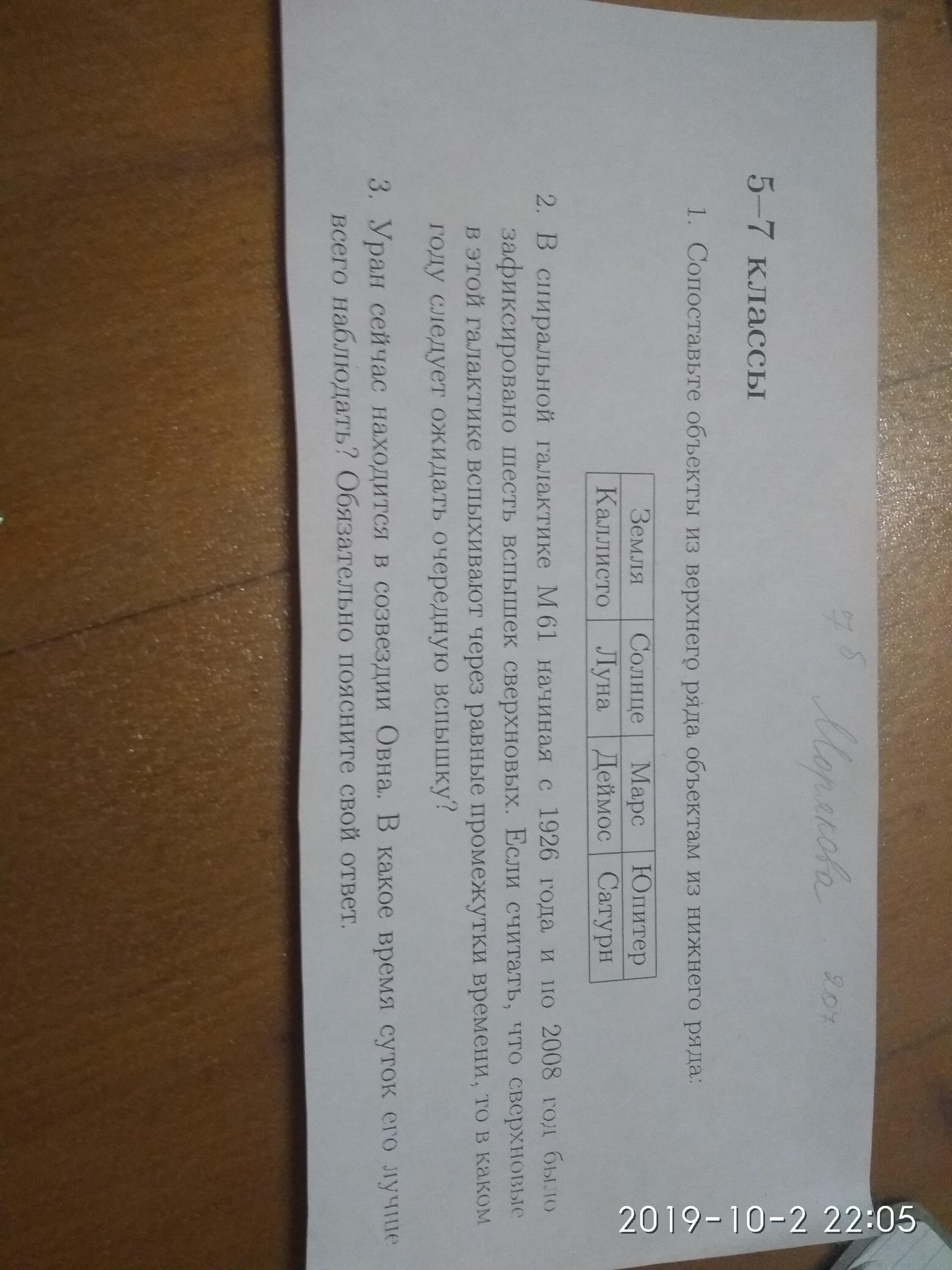 Объяснение: 2. Равные промежутки времени, через которые (гипотетически) происходили вспышки сверхновые = (2008 - 1926)/5 = 16,4 года. Следовательно, следующая вспышка после 2008 года гипотетически произойдет в 2008 + 16,4 ≈ 2024 году.