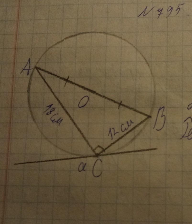 Доказательство того, что угол ACB прямой. Известно, что a - касательная, а AB - диаметр. Если есть теорема, по которой это должно работать, то просто напишите её название. (Если ACB - не прямой угол, то напишите, чему равен диаметр и почему).