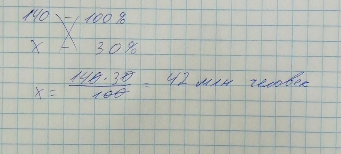 х = 140 млн. чел. * 30 : 100