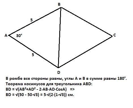 BD = √(50 - 50·√3) = 5·√(2·(1-√3)) см.