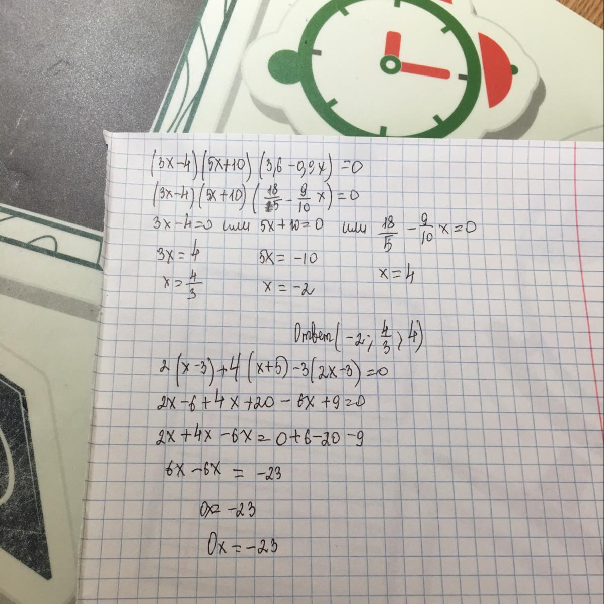 1). (3х-4)(5х+10)(3,6-0,9х)=0