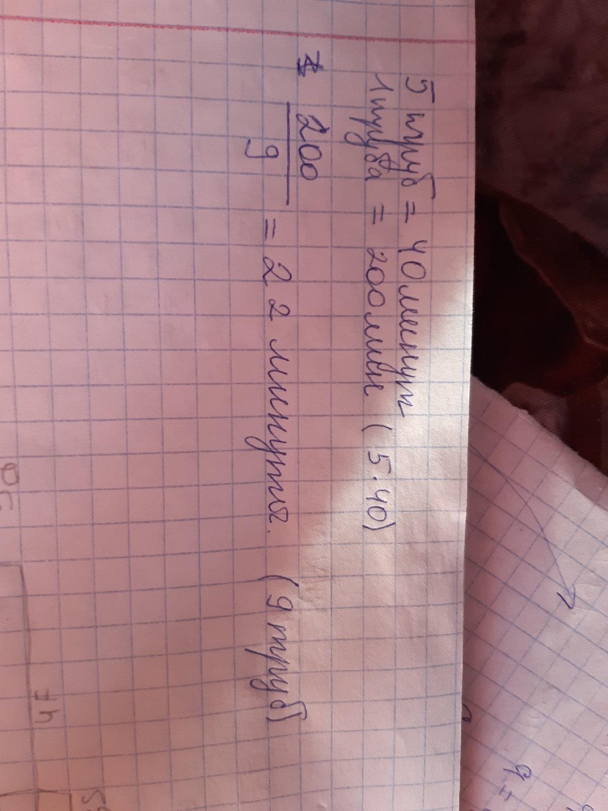 (40 мин * 5) : 9 = 200/9 = 22 2/9 мин - ответ.