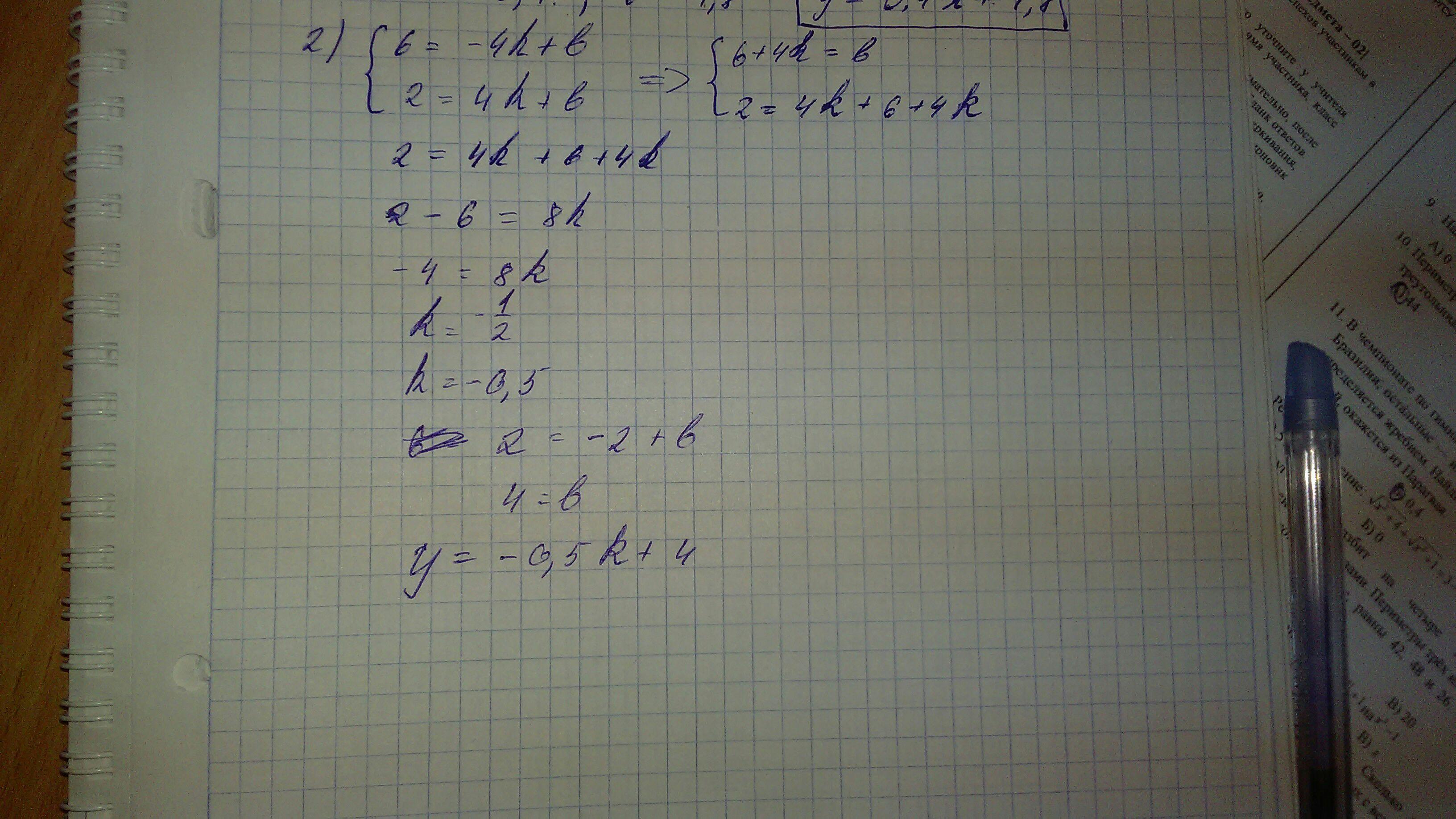 Запишите уравнение прямой y=kx+b, проходящей через точки: