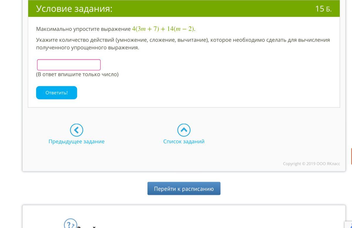 4(3m + 7) + 14(m - 2) = 12m + 28 + 14m - 28 = 26m;