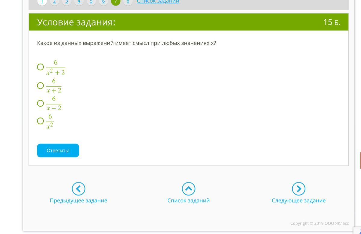 3) Если х = 2, то выражение не имеет смысла, т.к получим 6/0 , а на нуль делить нельзя