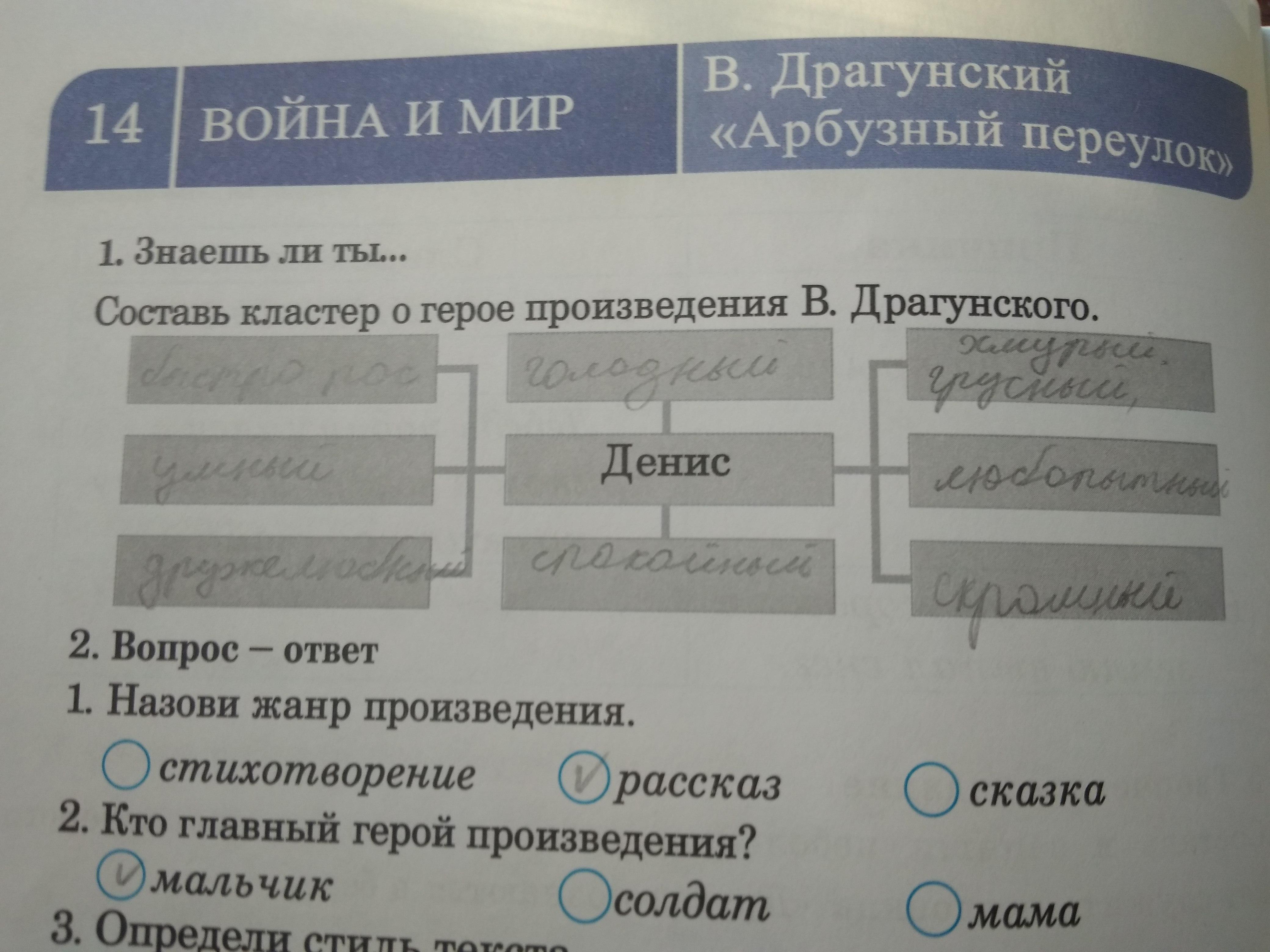 Ответ: быстро рос, голодный, хмурый, грустный, умный, дружелюбный, спокойный, скромный, любопытный.