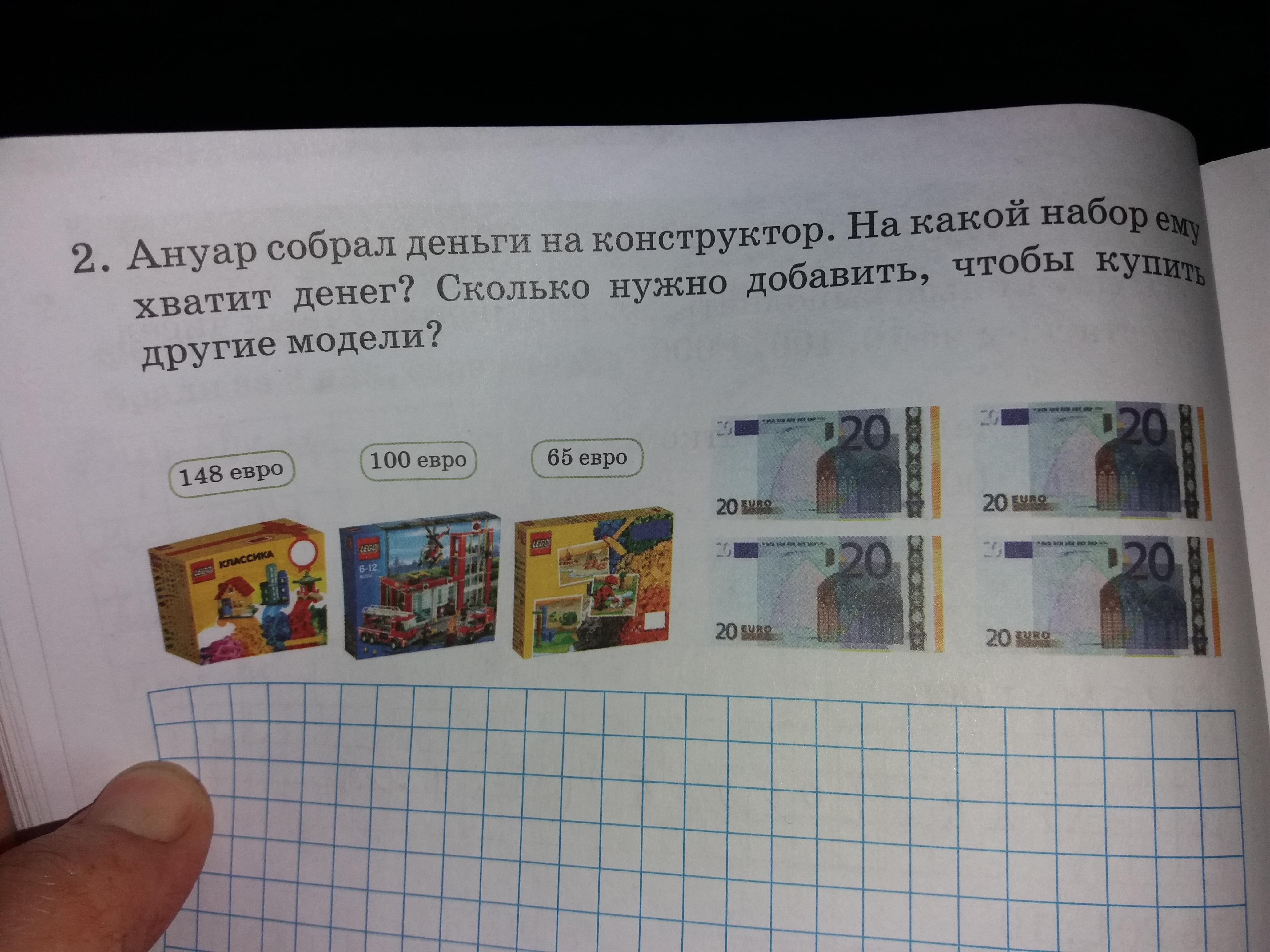Ануар собрал деньги на конструктор на какой набор ему хватит денег сколько нужно добавить чтобы купить другие модели если у него 80 евро