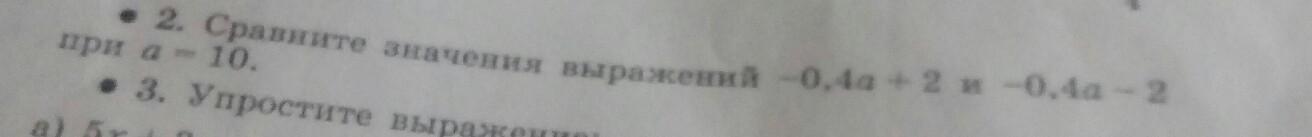 - 0,4a - 2 = - 0,4 * 10 - 2 = - 4 - 2 = - 6