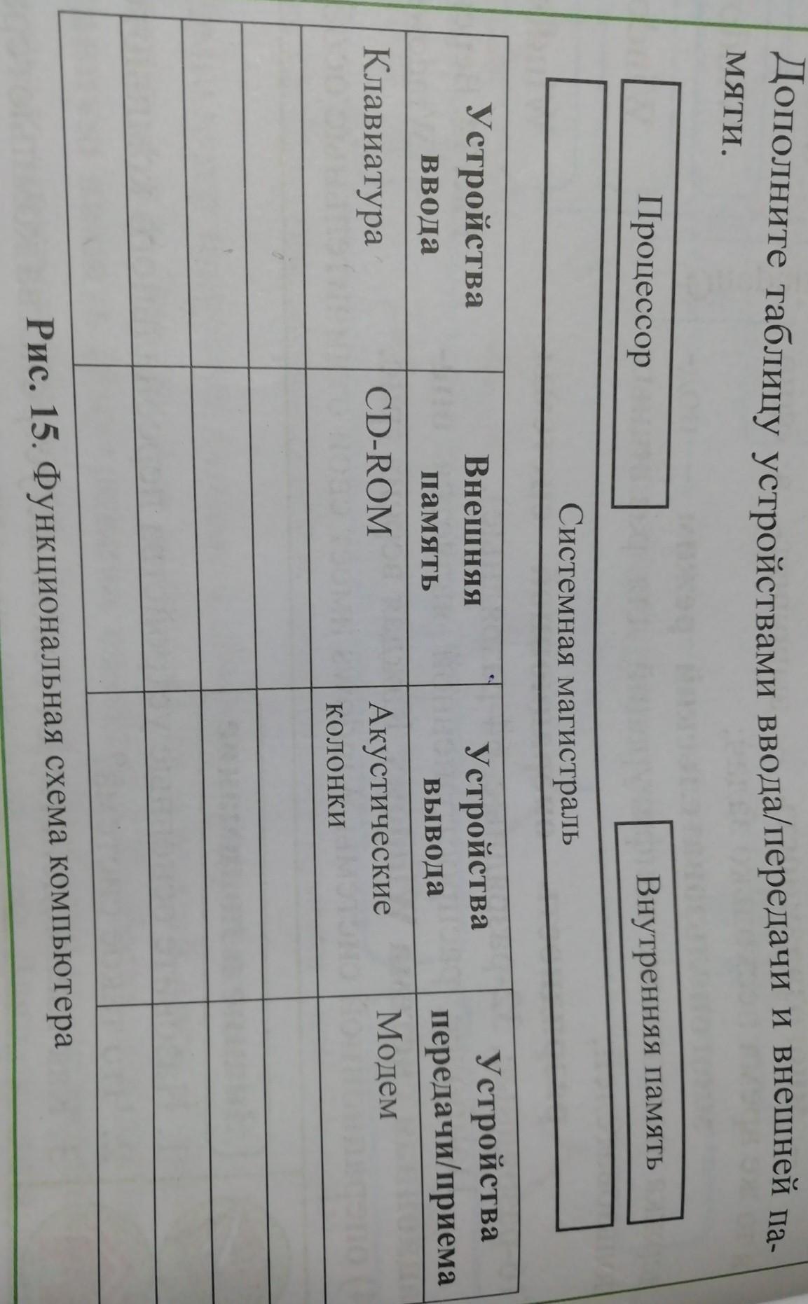 Дополните таблицу устройствами вода/передачи и внешней памяти.