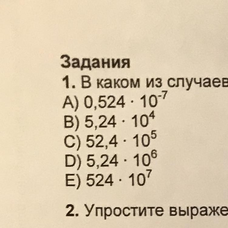 Стандартный вид числа принято записывать в стандартном виде: a∙10n, где 1≤а<10 и n (натуральное или целое)