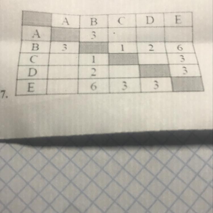 Между населенными пунктами A, B, C, D, E построены дороги, протяженность которых приведена в таблице. Определите длину кратчайшего пути между пунктами A и E. Передвигаться можно только по дорогам, протяженность которых указана в таблице.