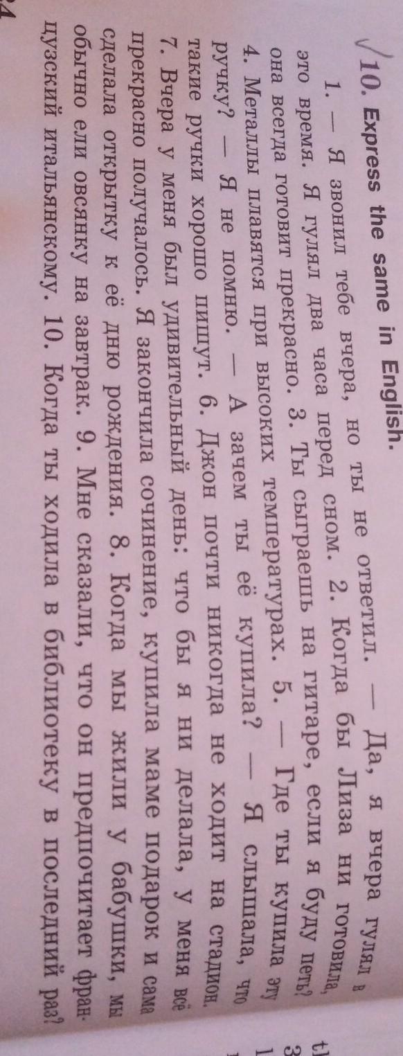 I called to you yesterday, but you didn’t answer. - Yes, im played yesterday at this time. Im played 2 hours before bedtime. 2. Whenever Lisa cooks, she's always cooks great! 3. Will you play on the guitar if i will sing?