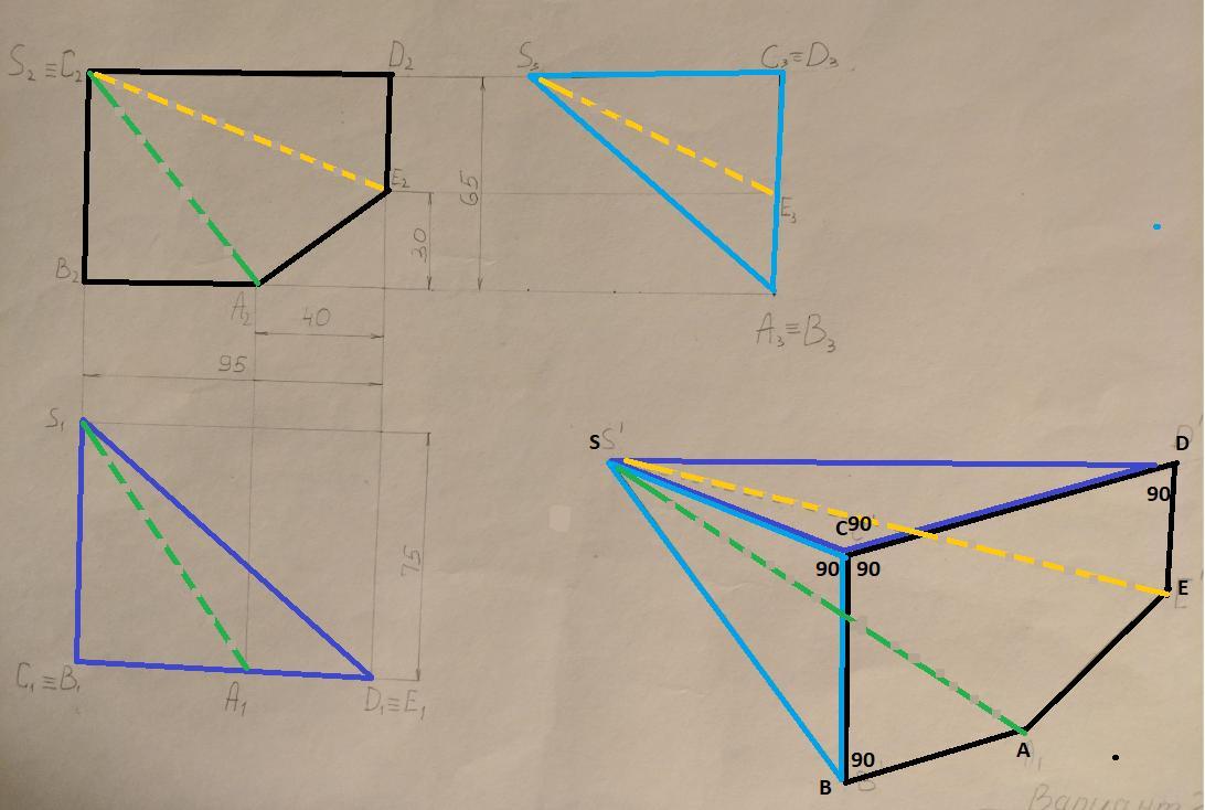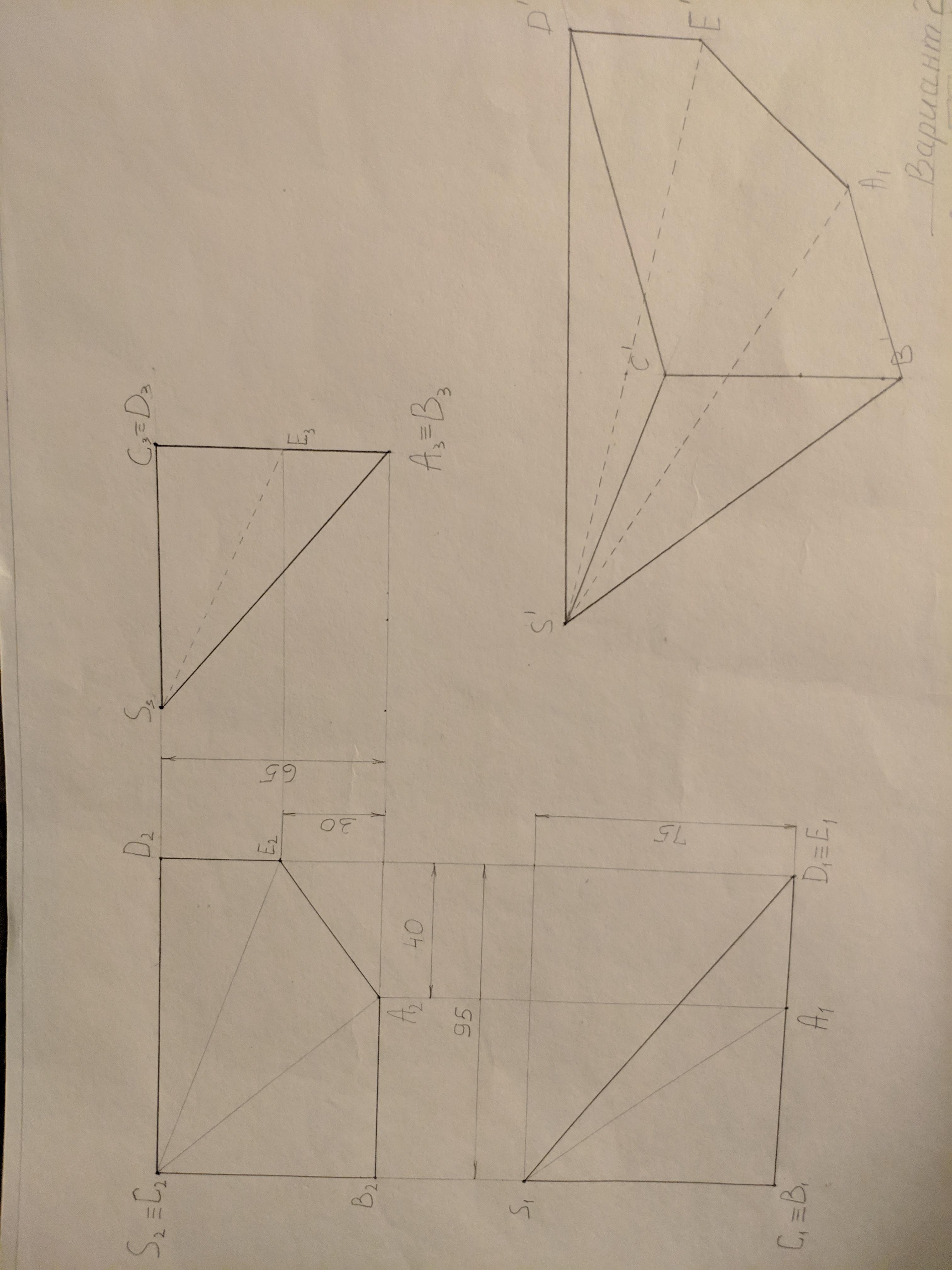Ещё раз вам огромное спасибо за ответ, не первый раз уже помогаете. Но немножко не то нужно примерно, положение рёбер: АЕ горизонтальное, DS фронтальное, BS профильное, CS горизонтально проэцирующее и т.д.... Положение граней: DES франтально проэцирующее, ABS профильно проэцирующее, ABCDE горизонтальное и т.д....