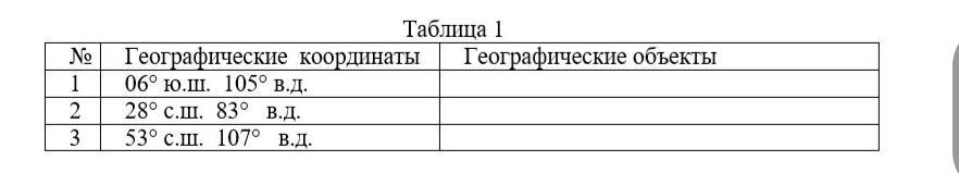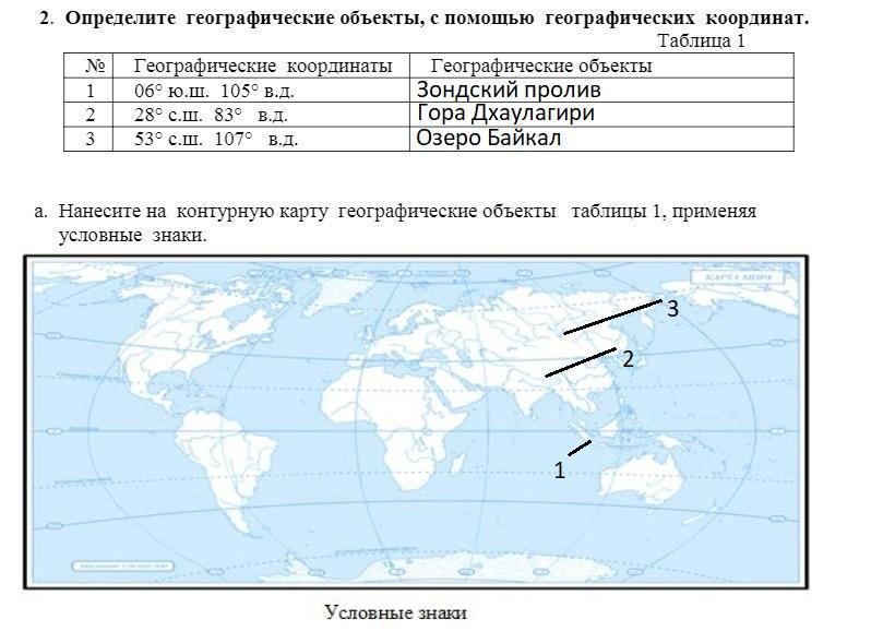 нанесите на контурную карту географические объекты Таблица 1 применяя условные знаки